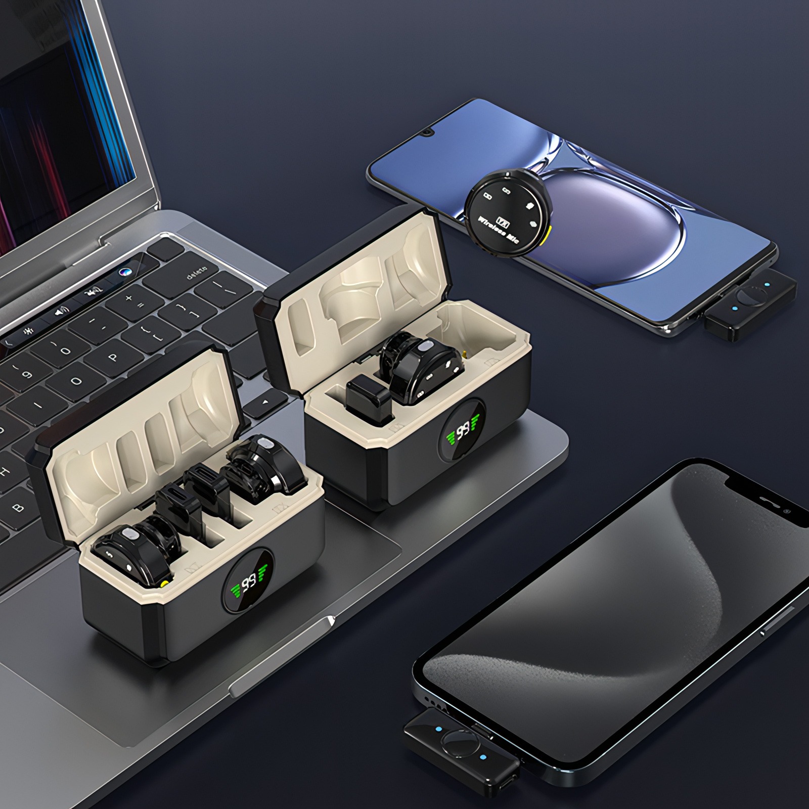 Käyttää 2.4G siirtoprotokollaa, joka käyttää omaa korkealaatuista pakkausalgoritmia, varmistaen vakaat ja selkeät äänisignaalit. Varustettu älykkäällä aktiivisella meluvaimennuspiirillä, joka parantaa häiriönsietoisuutta, jolloin äänen talteenotto onnistuu tarkasti jopa meluisassa ympäristössä, taaten kristallinkirkkaat puhelut tai äänitykset kuin hiljaisessa tilassa.